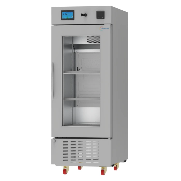 Медицинский фармацевтический холодильник на 225 литров для хранения лекарства, вакцины и других лекарственных средств. Нержавеющая сталь, беспроводной доступ через Wi-Fi, для удаленного информирования пользователя об аварийных ситуациях с оборудованием с помощью sms или e-mail.