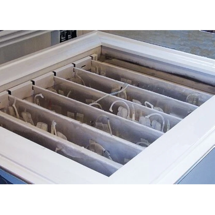 Швидкозаморожувач плазми крові типу скриня на 12 комірок для 48 контейнерів (номінального об’єму 450 мл) з чистим вмістом плазми 250 мл., або 16 контейнерів (номінального об'єму 1000 мл) з чистим вмістом плазми 650 мл.
