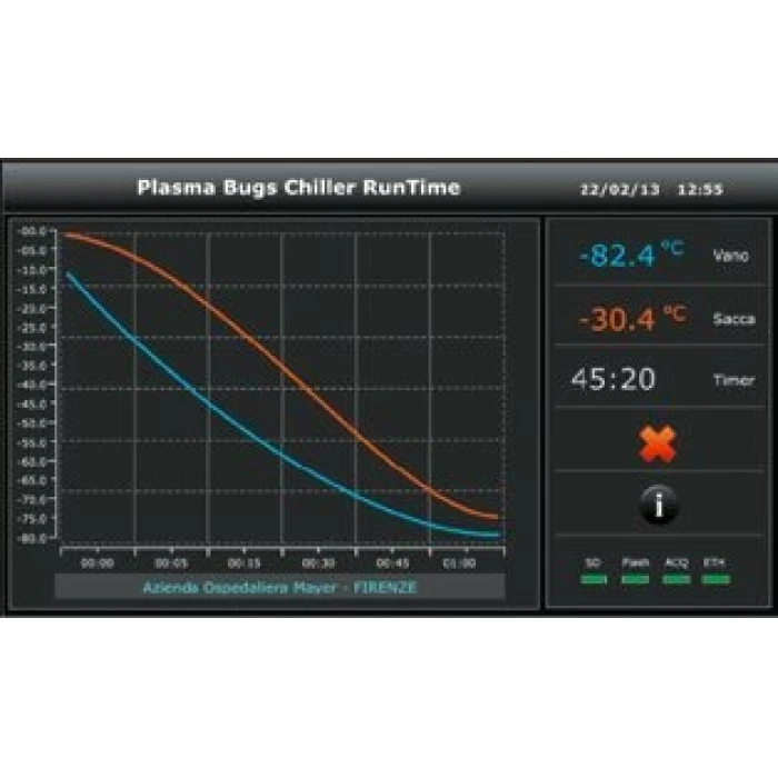 Швидкозаморожувач може бути обладнаним електронним реєстратором та пристроєм зчитування штрих-кодів; користувач може встановити робочий графік для одиничної партії заморожування, визначаючи: а) окремі одиниці плазми; б) оператор; в) крива зсуву Т: всі дані експортуються, як у паперовому вигляді, так і в цифровому форматі, що гарантує повну простежуваність заморожування партії контейнерів з плазмою.